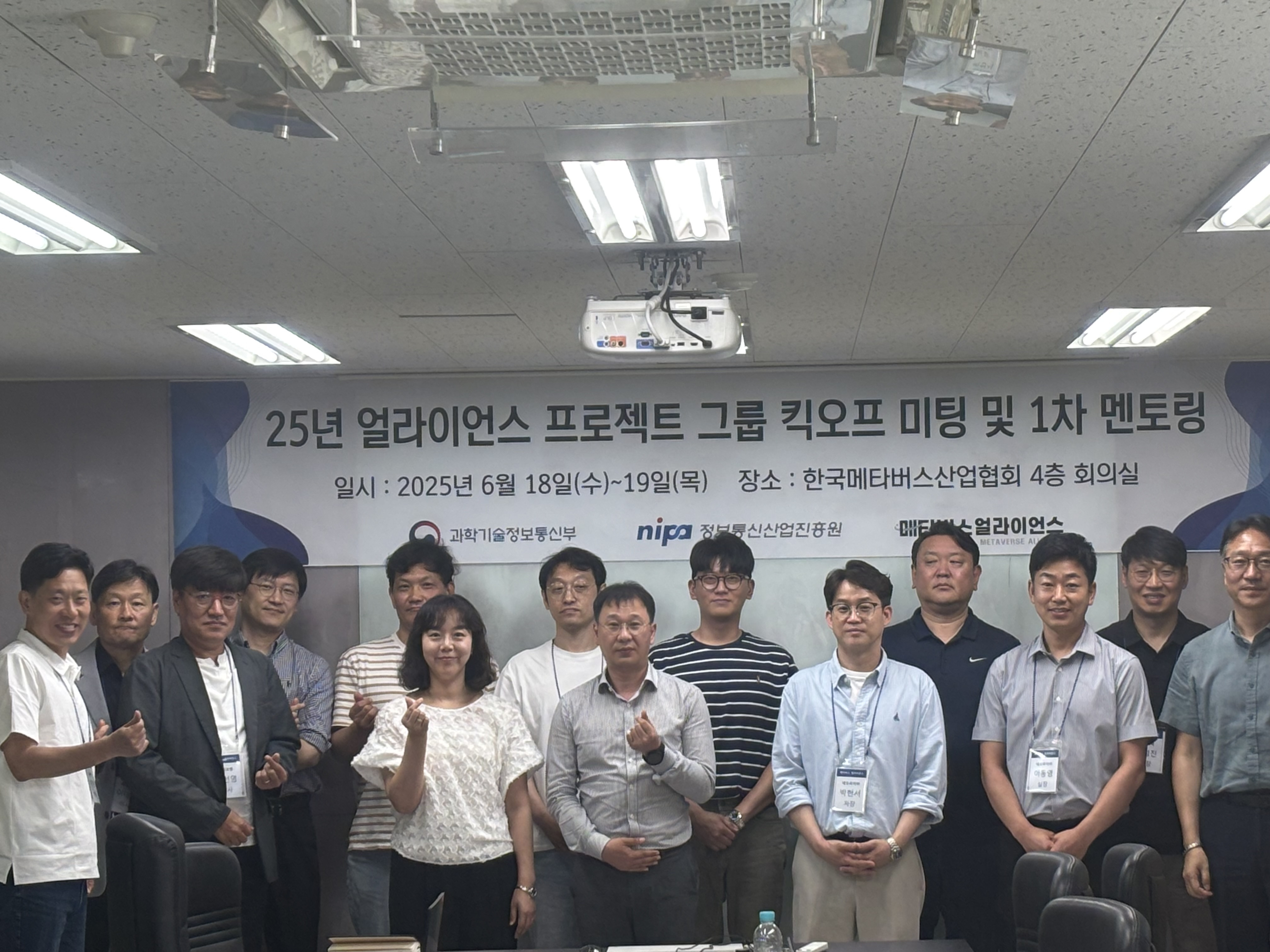 지난 6월 18일(수)~19일(목) 25년도 메타버스 얼라이언스 프로젝트 그룹 1차 서류 심사에 통과된 그룹 대상으로 킥오프 미팅 및 1차 멘토링을 진행했습니다.