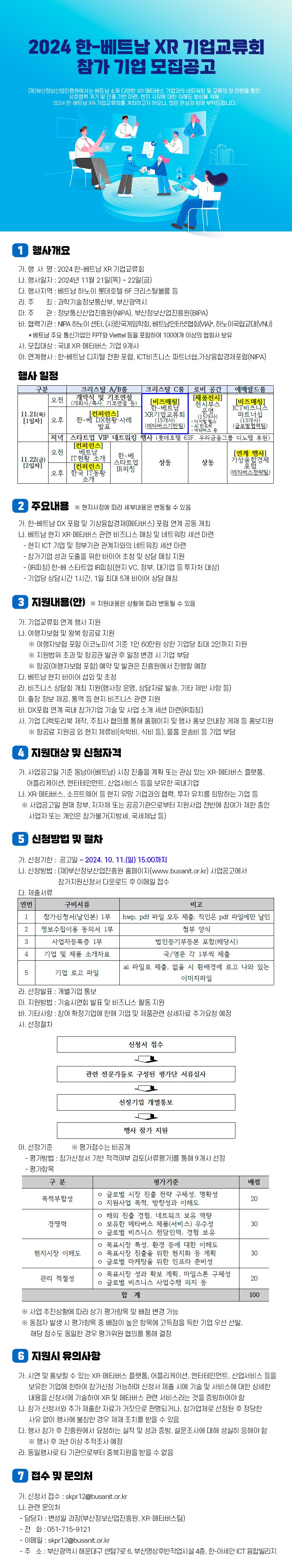 첨부1. (일반)2024 한-베트남 XR 기업교류회 참가기업 모집공고.hwp 첨부2. (양식)2024 한-베트남 XR 기업교류회 참가신청서.hwp