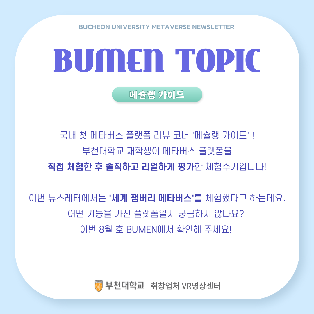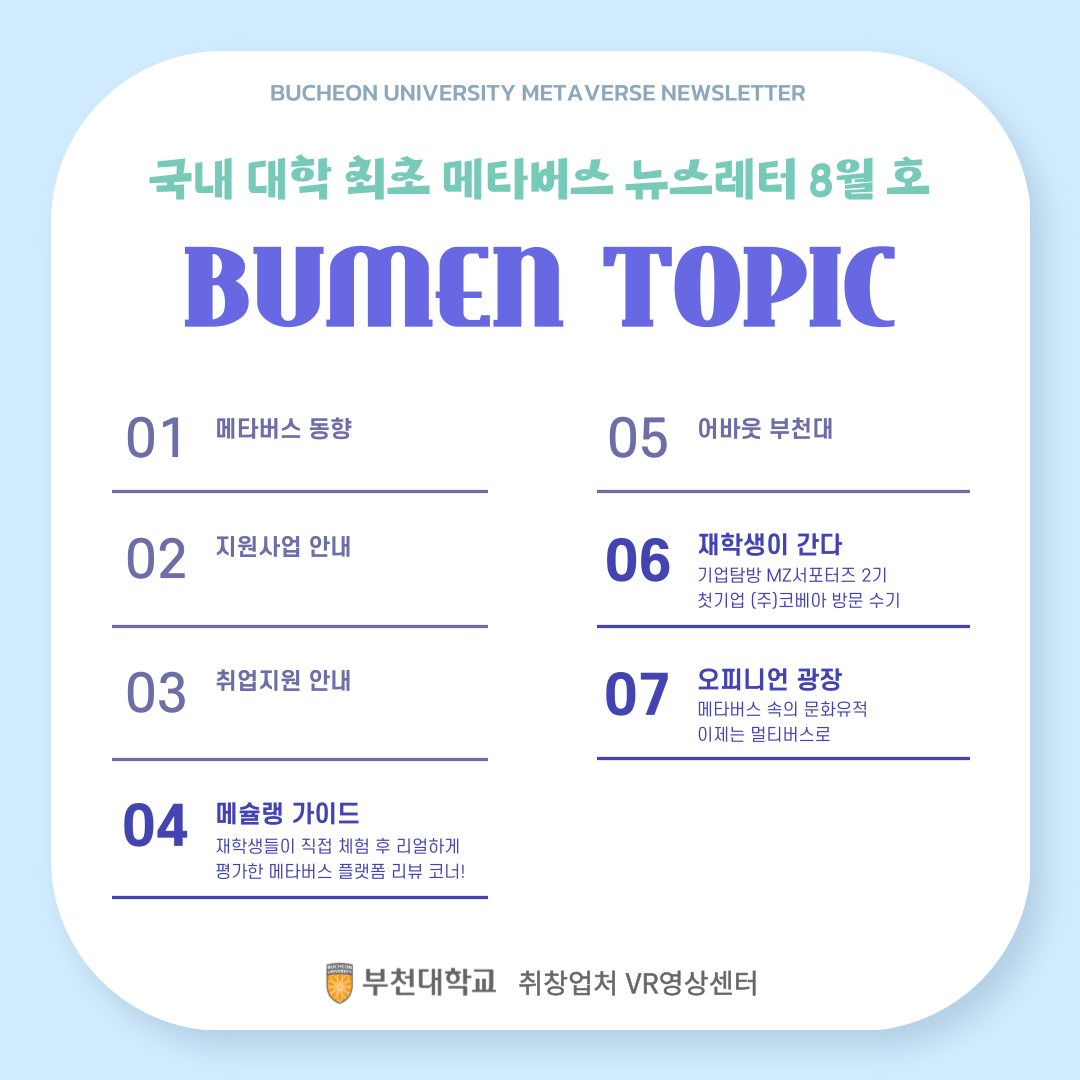 [부천대학교] 2023년 8월 메타버스 월간뉴스레터 다운로드 링크: http://sbook.allabout.co.kr/Links/BUMEN/230810113305389