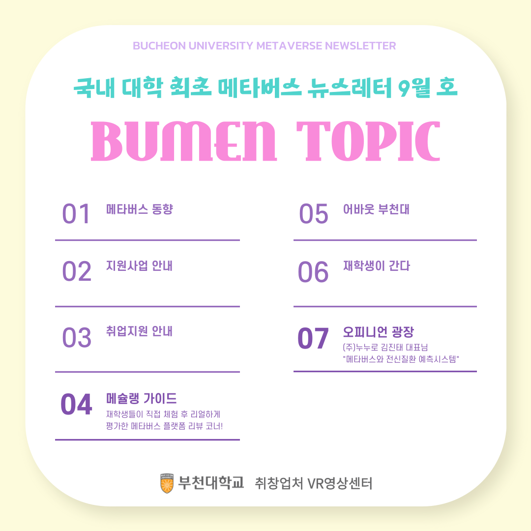 [부천대학교] 2023년 9월 메타버스 월간뉴스레터 다운로드 링크: http://sbook.allabout.co.kr/Links/BUMEN/230906134238672