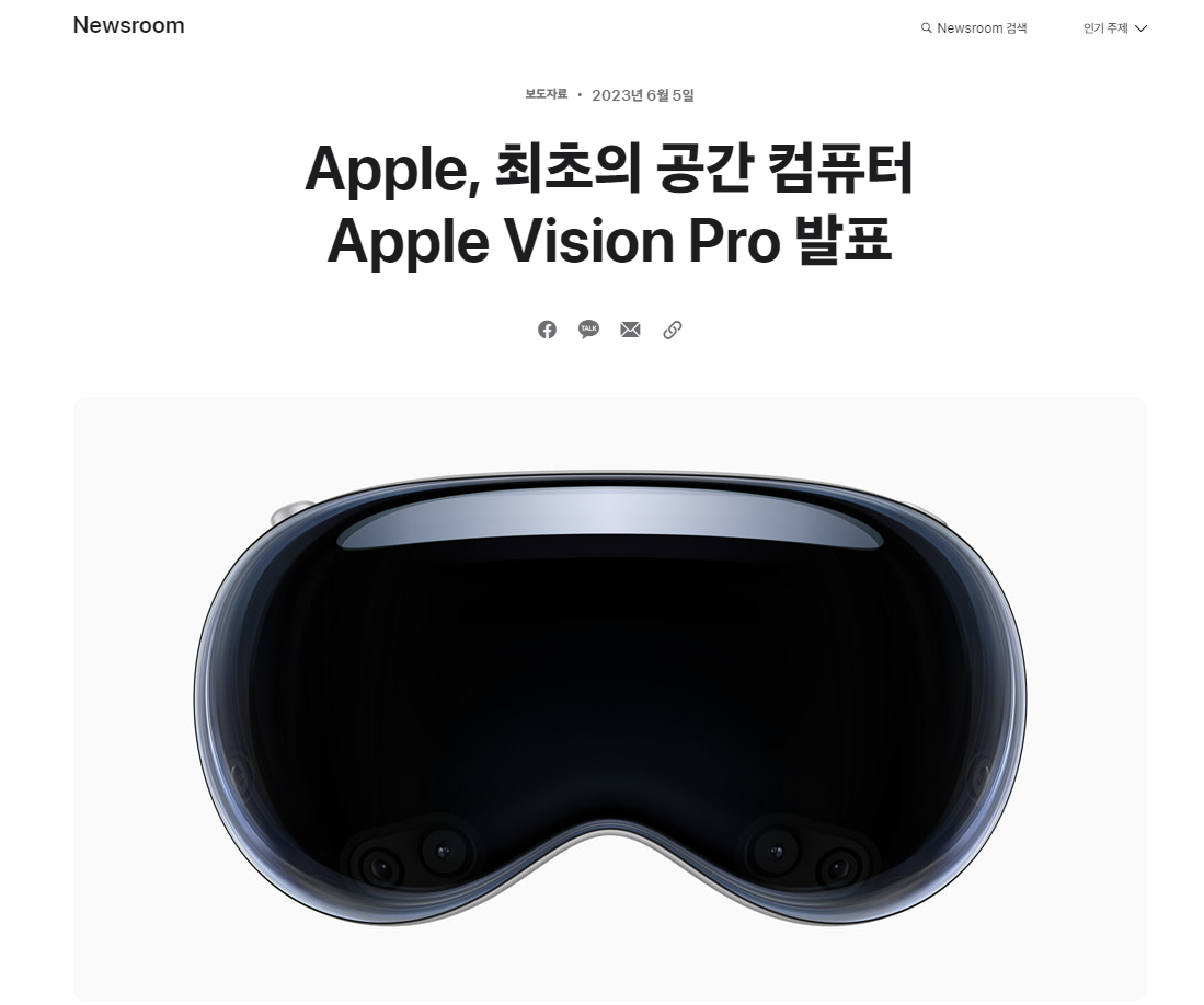 [애플]Apple, 최초의 공간 컴퓨터 Apple Vision Pro 발표