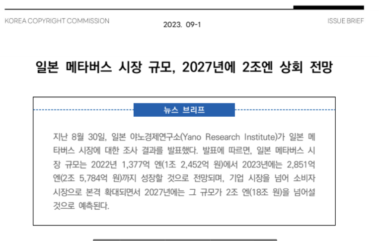 [링크 : https://www.copyright.or.kr/information-materials/trend/tmis/viewPress.do?brdctsno=52224&pageIndex=1&brdclasscodeList=&brdctsstatecode=&brdclasscode=&nationcodeList=&searchTarget=ALL&nationcode=&brdno=152¬iceYn=&etc2=&etc1=&searchText=&portalcode=04&servicecode=06&searchkeyword=&portalcode04=]