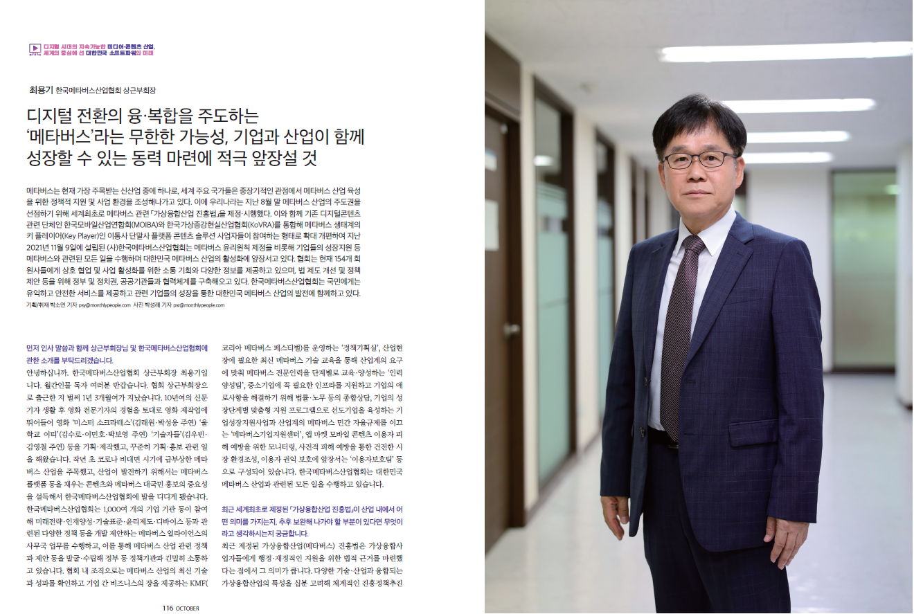 [사무국] 최용기 한국메타버스산업협회 상근부회장 월간인물 10월호 인터뷰 게재