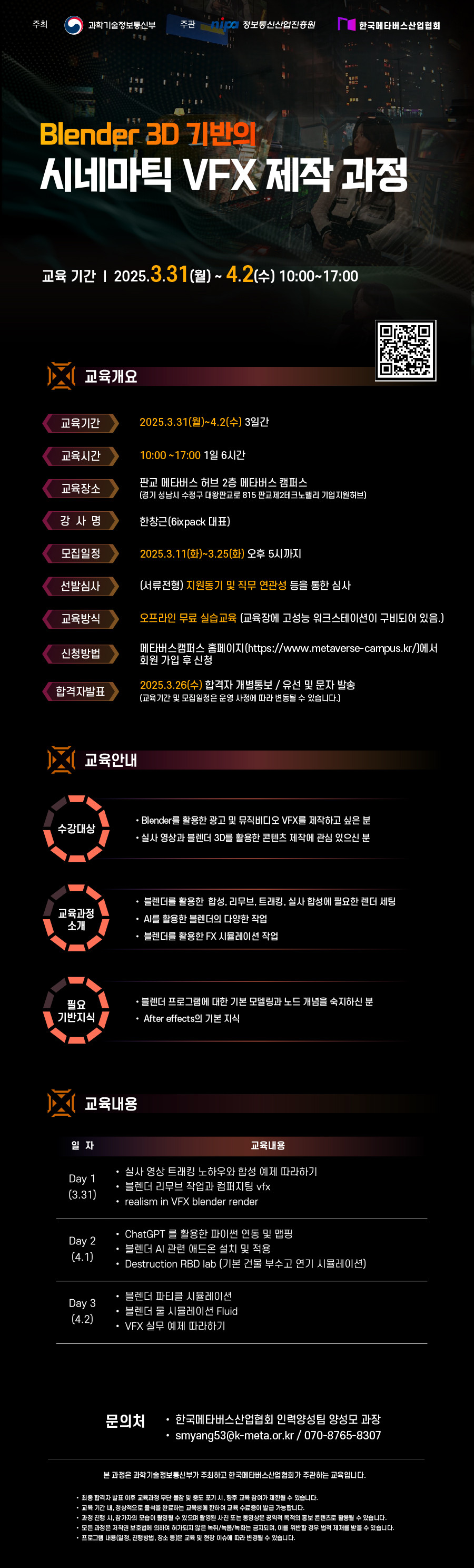 교육참가신청링크: https://www.metaverse-campus.kr/lecture/viewAll.do?pageIndex=1&menu_idx=50&lecIdx=17&proIdx=231&selYear=&selApplyStatus=