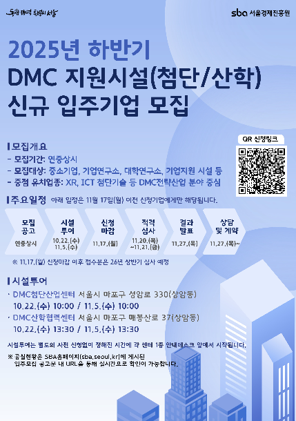 ■ 2025년 하반기 DMC지원시설(첨단/산학) 신규 입주기업 모집 공고