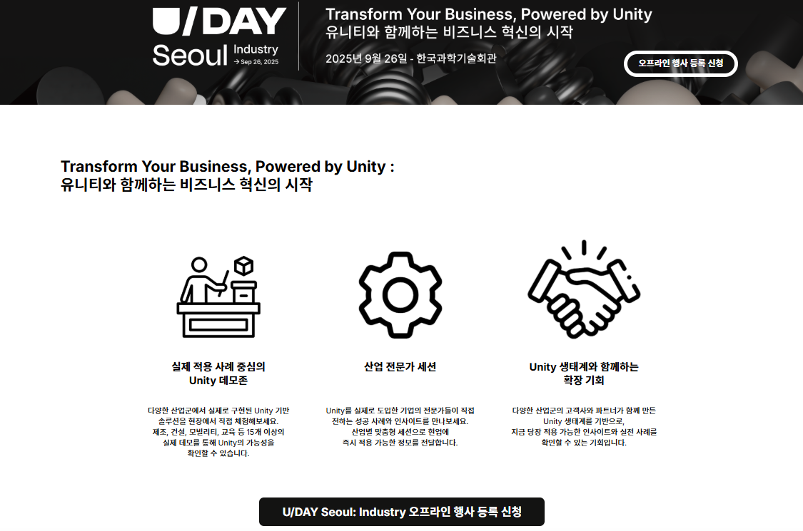 [Unity] U/DAY Seoul: Industry 행사 안내