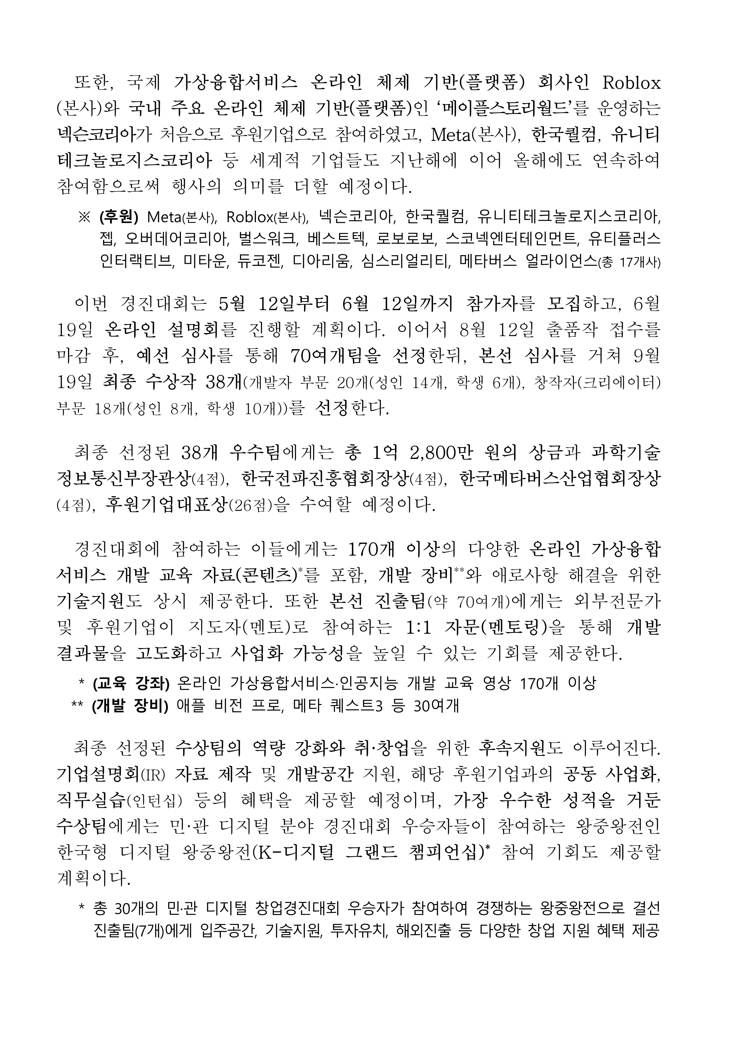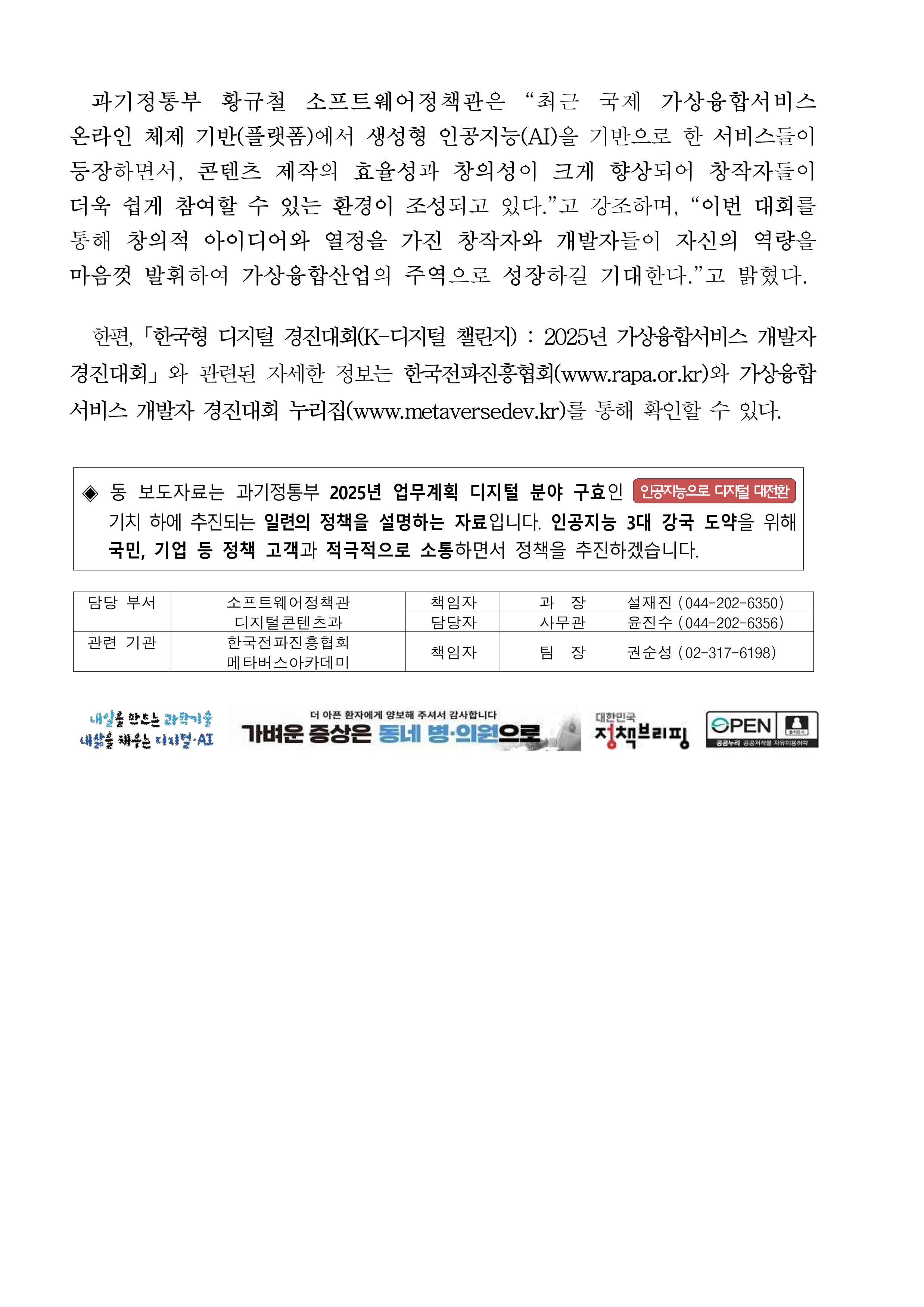 첨부문서: 250513 조간 (보도) 2025년 가상융합서비스 개발자 경진대회 개최(수정).pdf