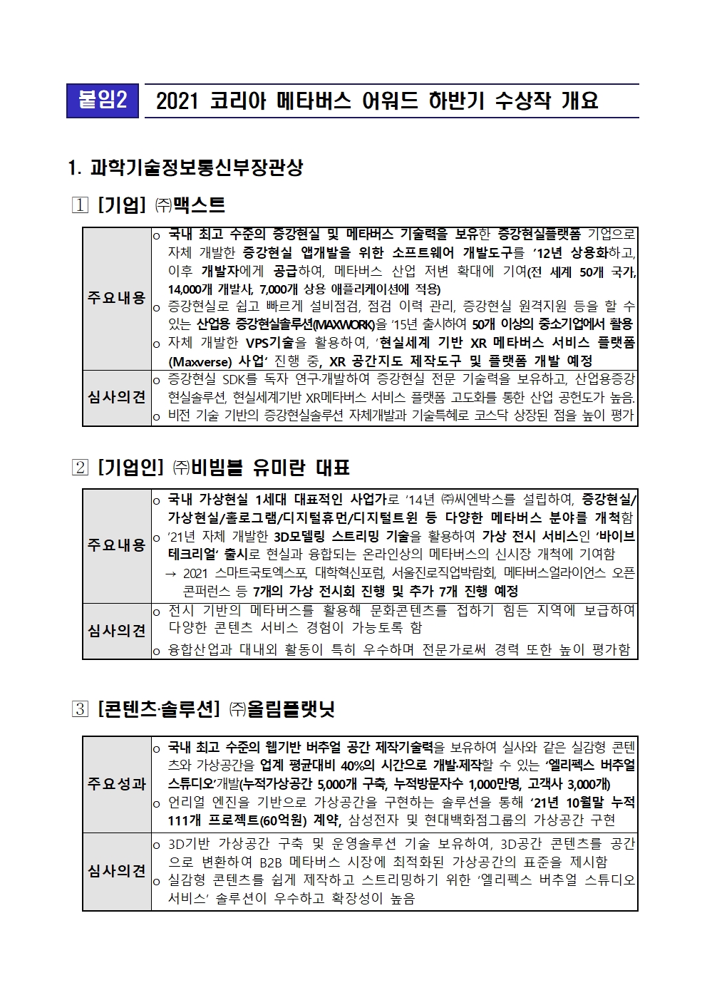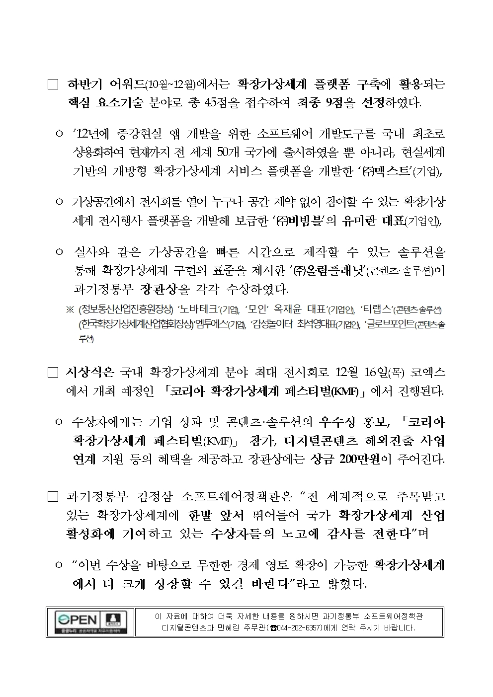 [과학기술정보통신부] 과기정통부, 확장가상세계(메타버스) 생태계를 이끌어 갈 선두주자 발굴