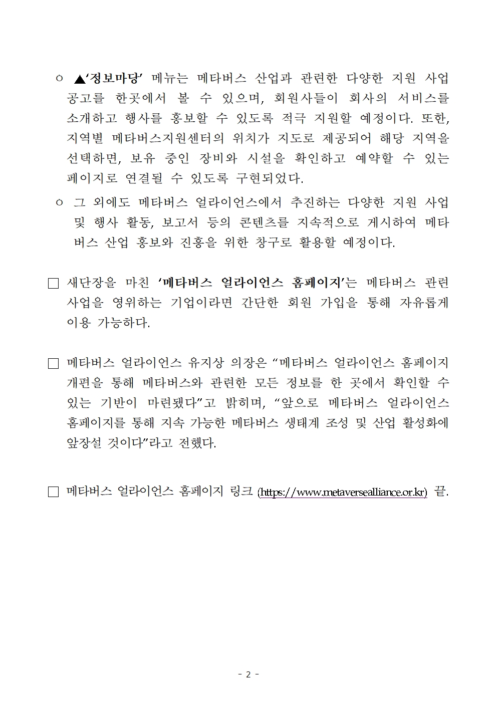 [사무국] ‘메타버스 얼라이언스’ 홈페이지 새단장