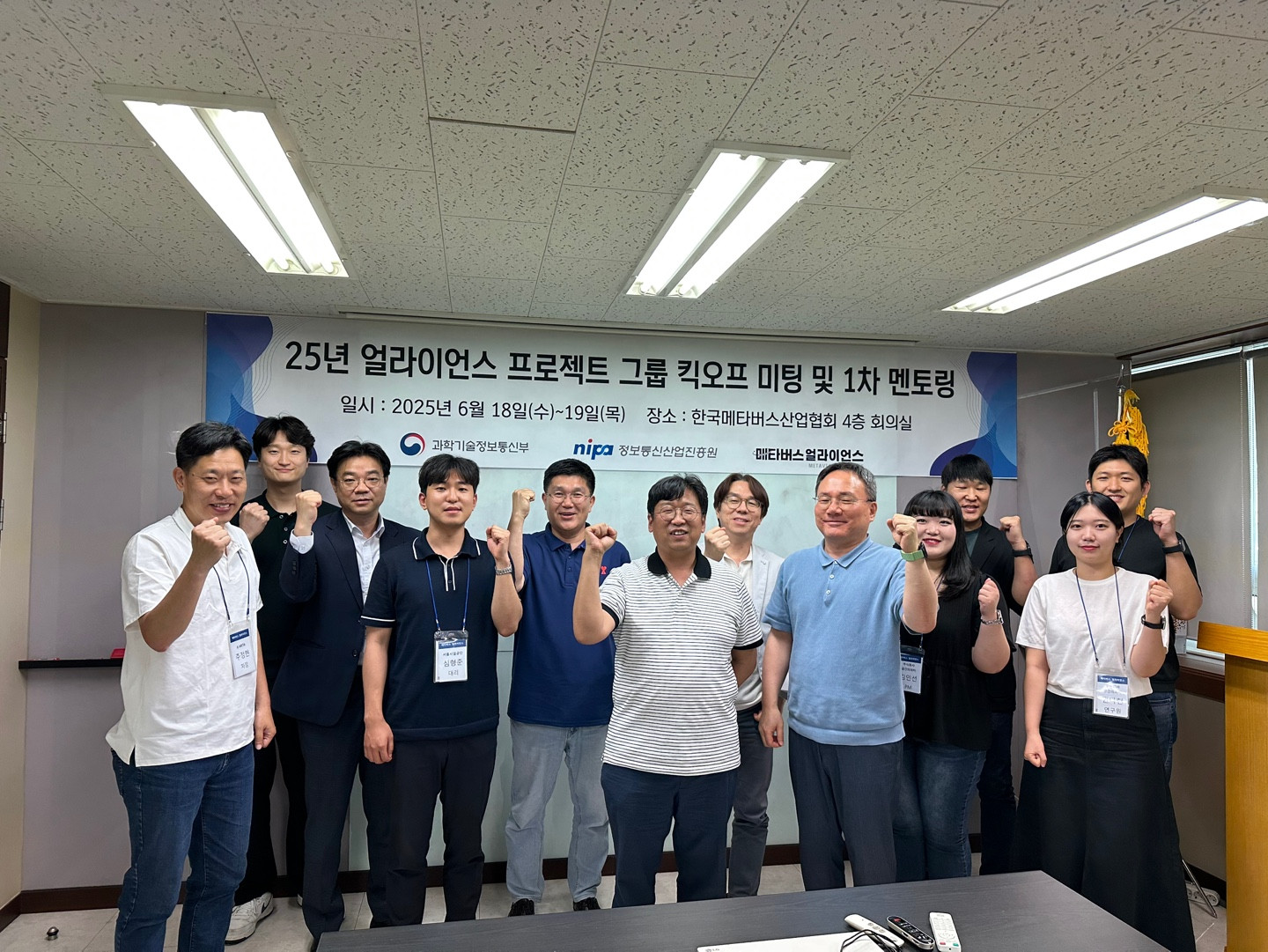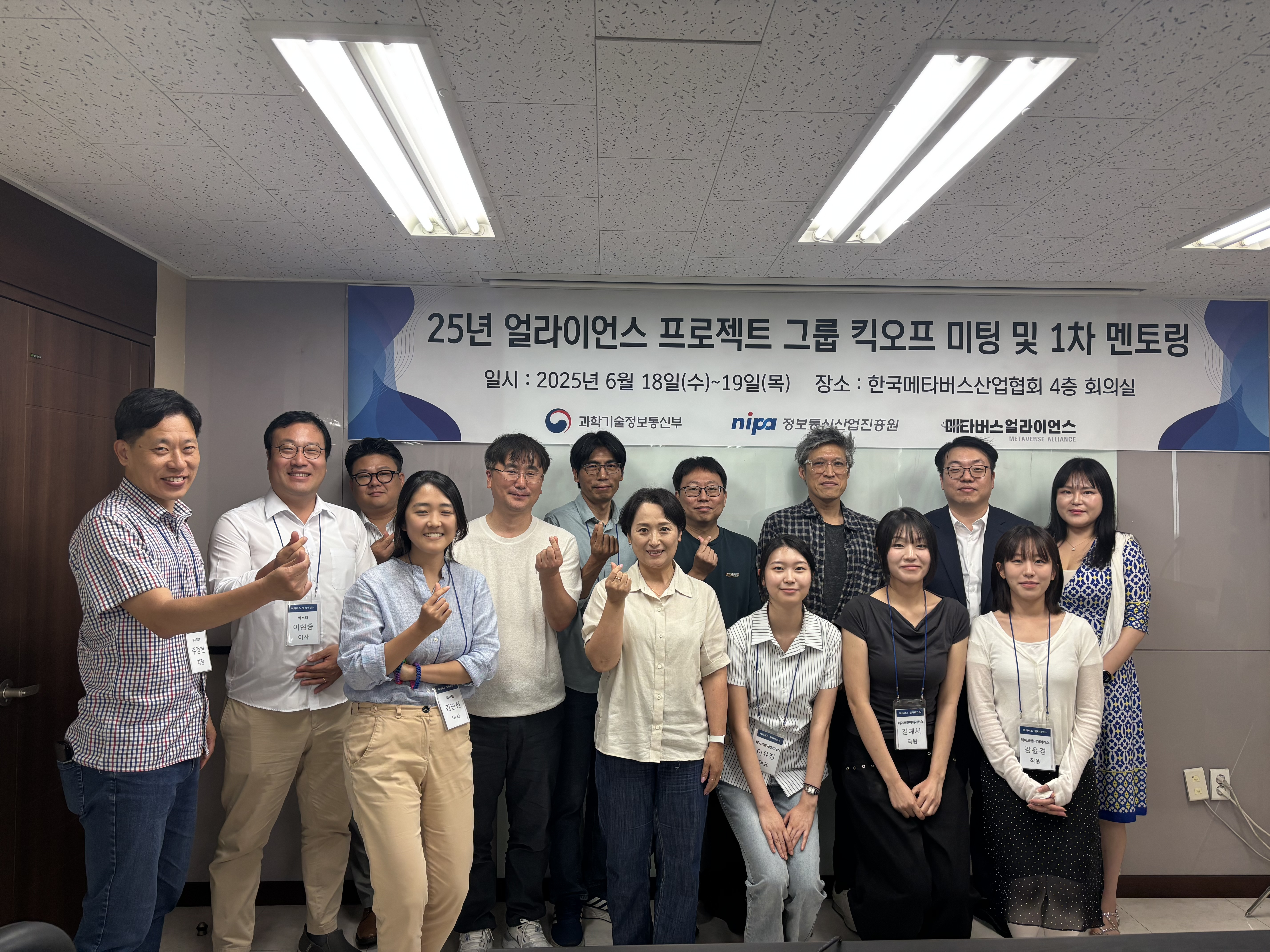 지난 6월 18일(수)~19일(목) 25년도 메타버스 얼라이언스 프로젝트 그룹 1차 서류 심사에 통과된 그룹 대상으로 킥오프 미팅 및 1차 멘토링을 진행했습니다.