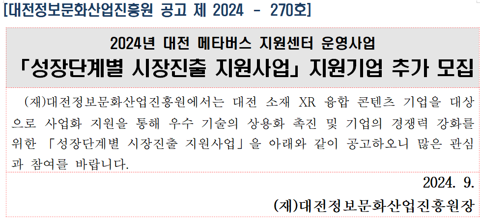 [대전정보문화산업진흥원] 2024년 XR융합 콘텐츠 기업 성장 단계별 시장진출 지원사업 모집 공고