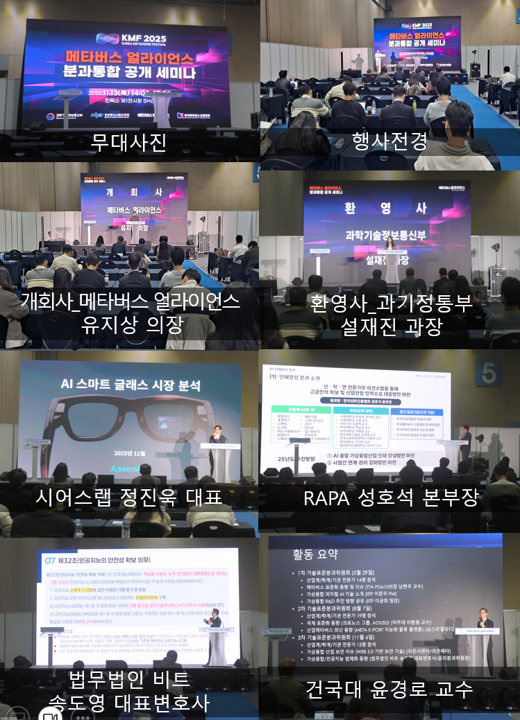 11월 13일 일산 킨텍스 제1전시장 5홀에선 진행된 "메타버스 얼라이언스 분과통합공개세미나" 발제자료 업로드하오니 참고하시기 바랍니다.