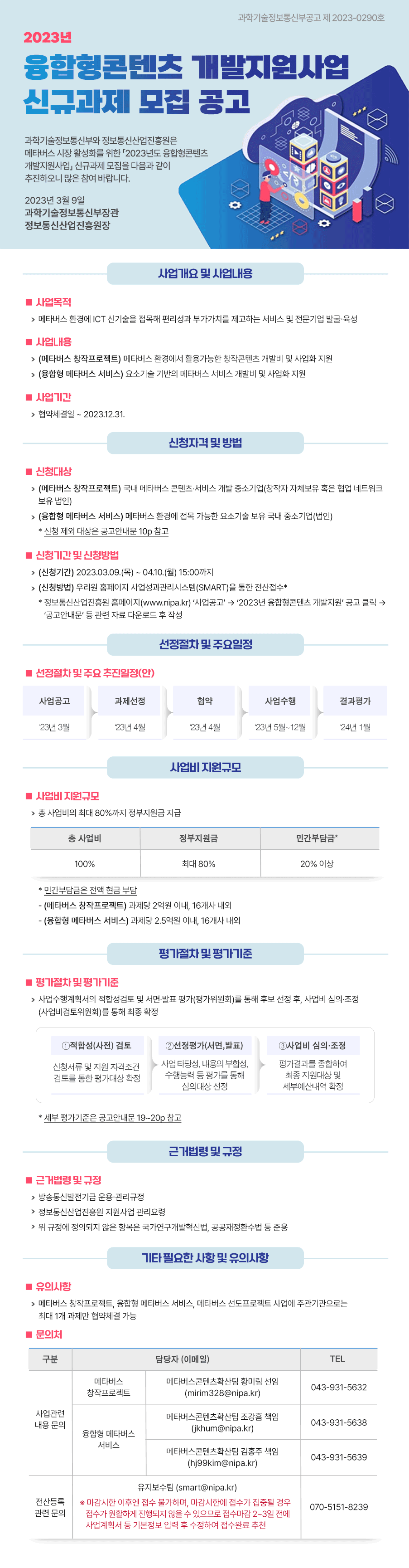 [과기부, NIPA]2023년 융합형콘텐츠 개발지원사업 공고자료 안내