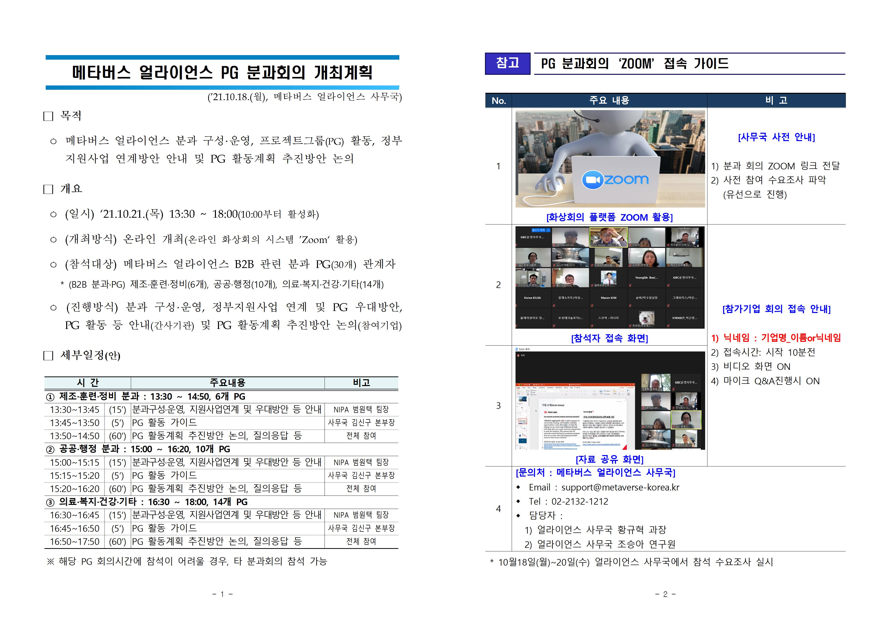 메타버스 얼라이언스 B2B분야 (제조·훈련·정비 / 공공·행정 / 의료·복지·건강) 분과회의 개최 안내