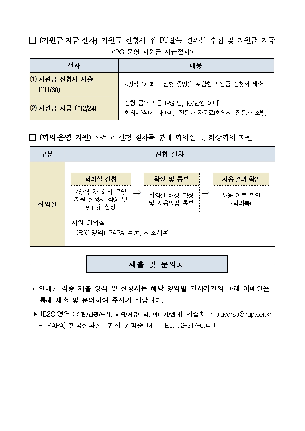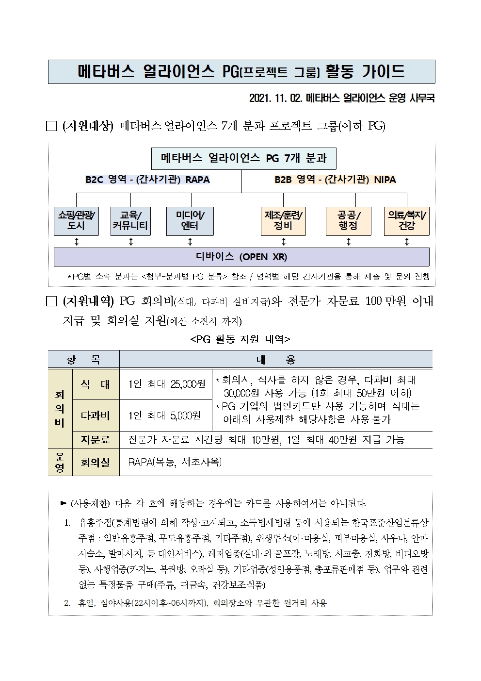 (B2C) 메타버스 얼라이언스 PG 활동 가이드(회의비, 전문가 자문료 지원)