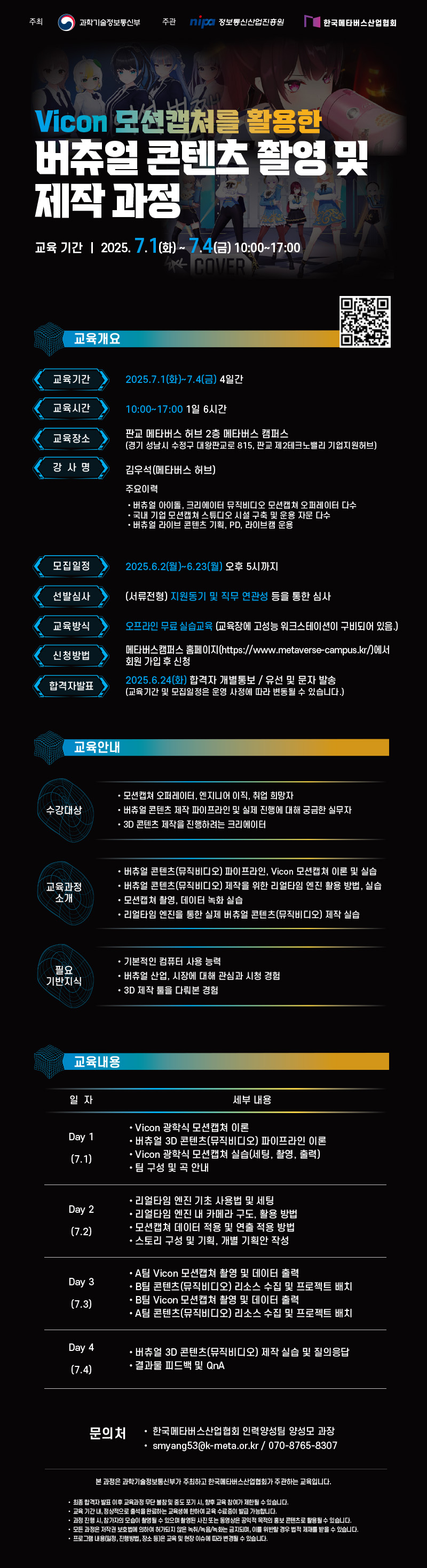 [K-META] Vicon 모션캡쳐를 활용한 버츄얼 콘텐츠 촬영 및 제작 과정 교육생 모집 안내