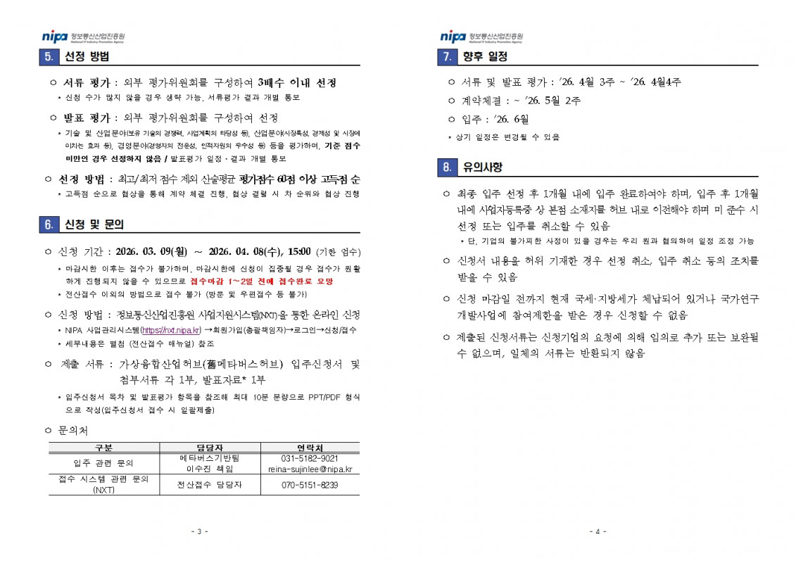 [NIPA] 2026년 1차 가상융합산업허브(메타버스허브) 입주기업 모집(~4/8, 15:00)