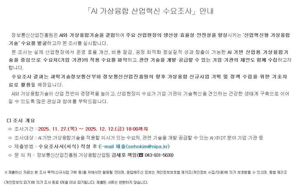 [NIPA] AI 가상융합 산업혁신 수요조사