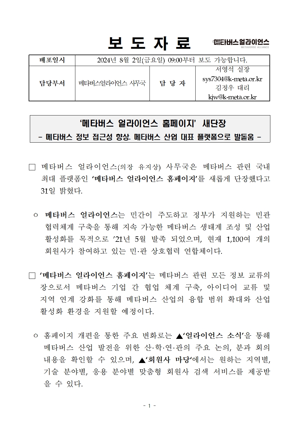 [사무국] ‘메타버스 얼라이언스’ 홈페이지 새단장